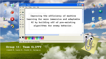 This is my final project for AI in games. My team and I designed a machine learning enemy AI boss. We took an existing algorithm and adapted it to perform live versus only adjusting at the end of a run. We also changed the way the AI was trained and the statistics it adjusted during training. Attached is the Unity Zip and I have our Canva presentation linked below!